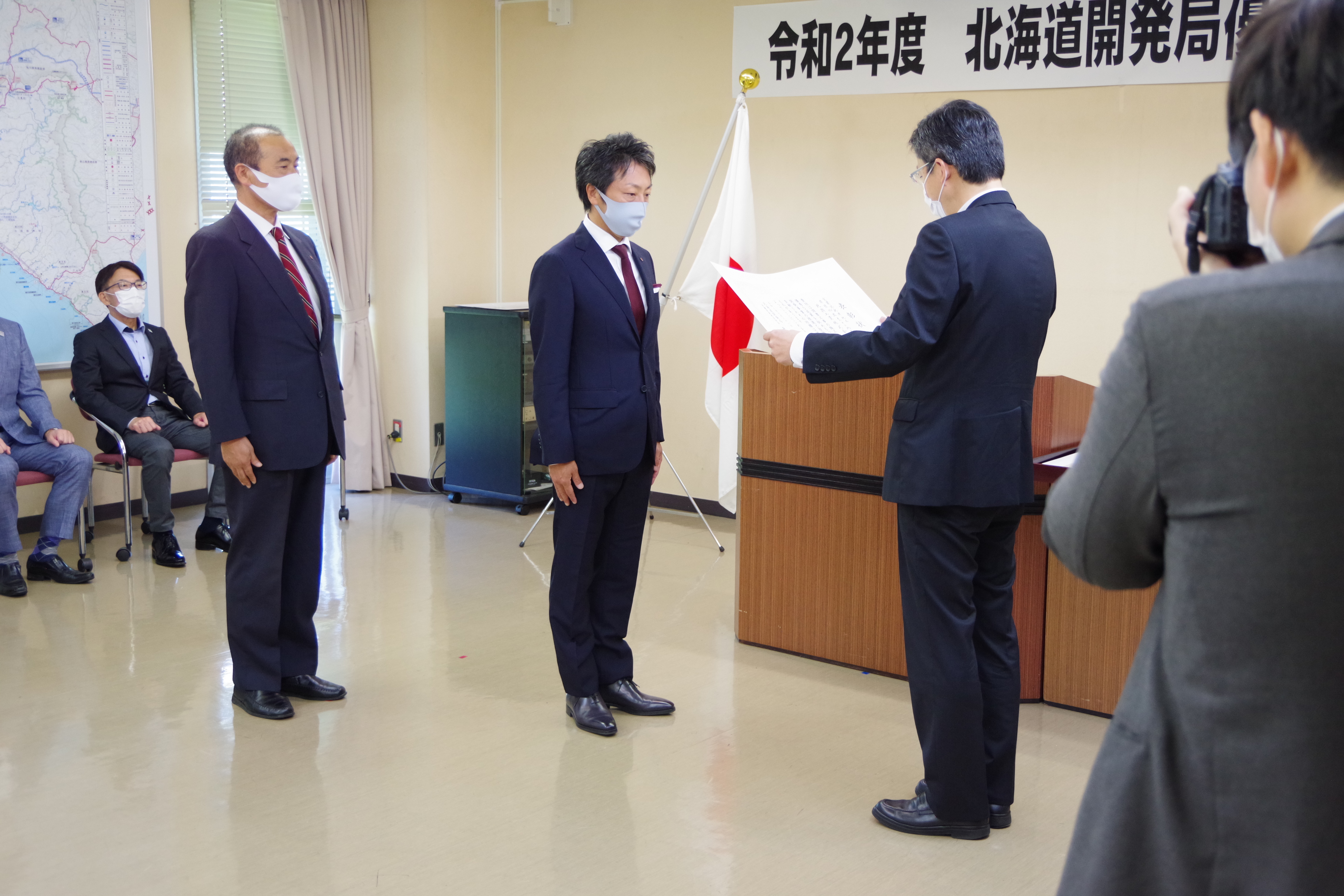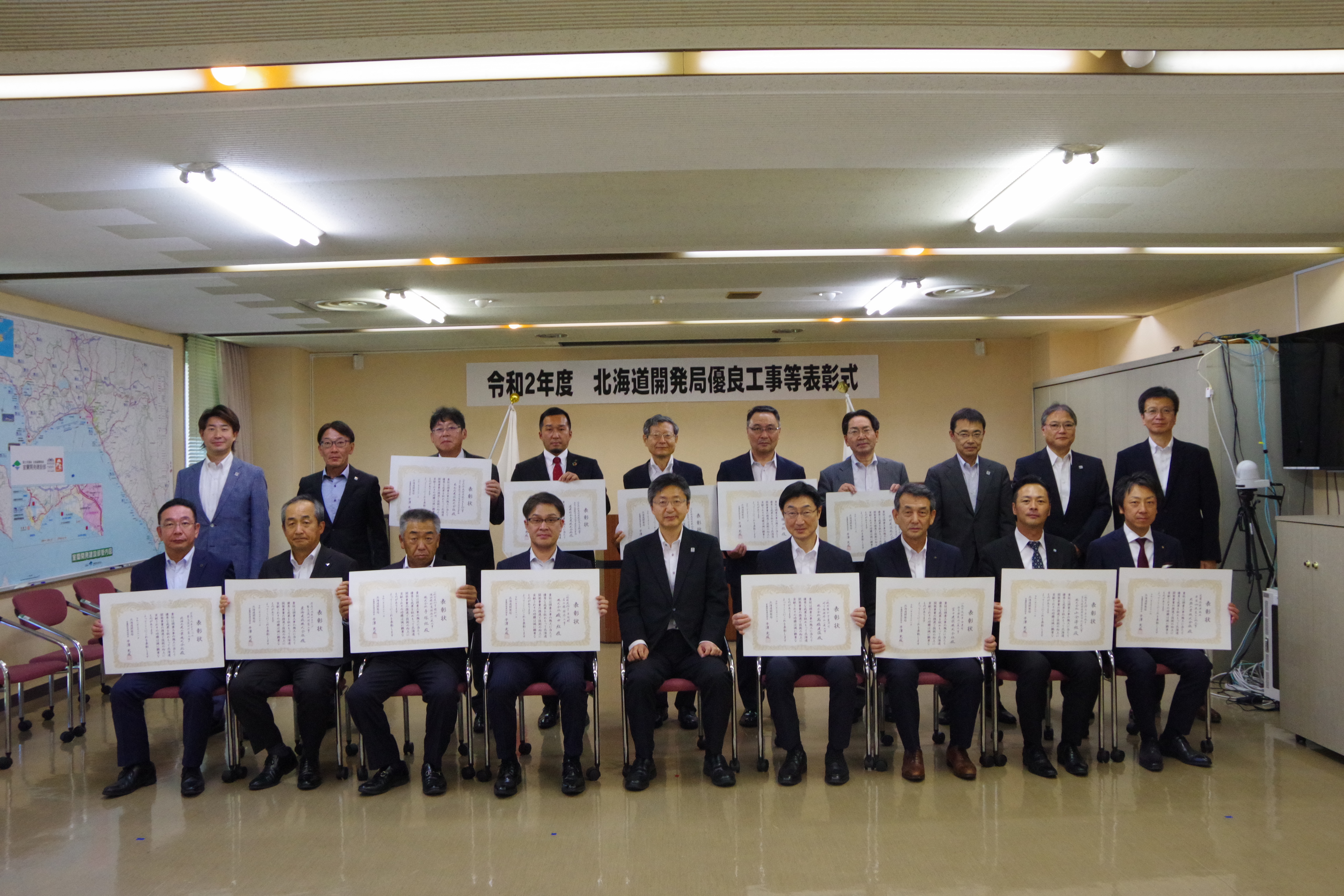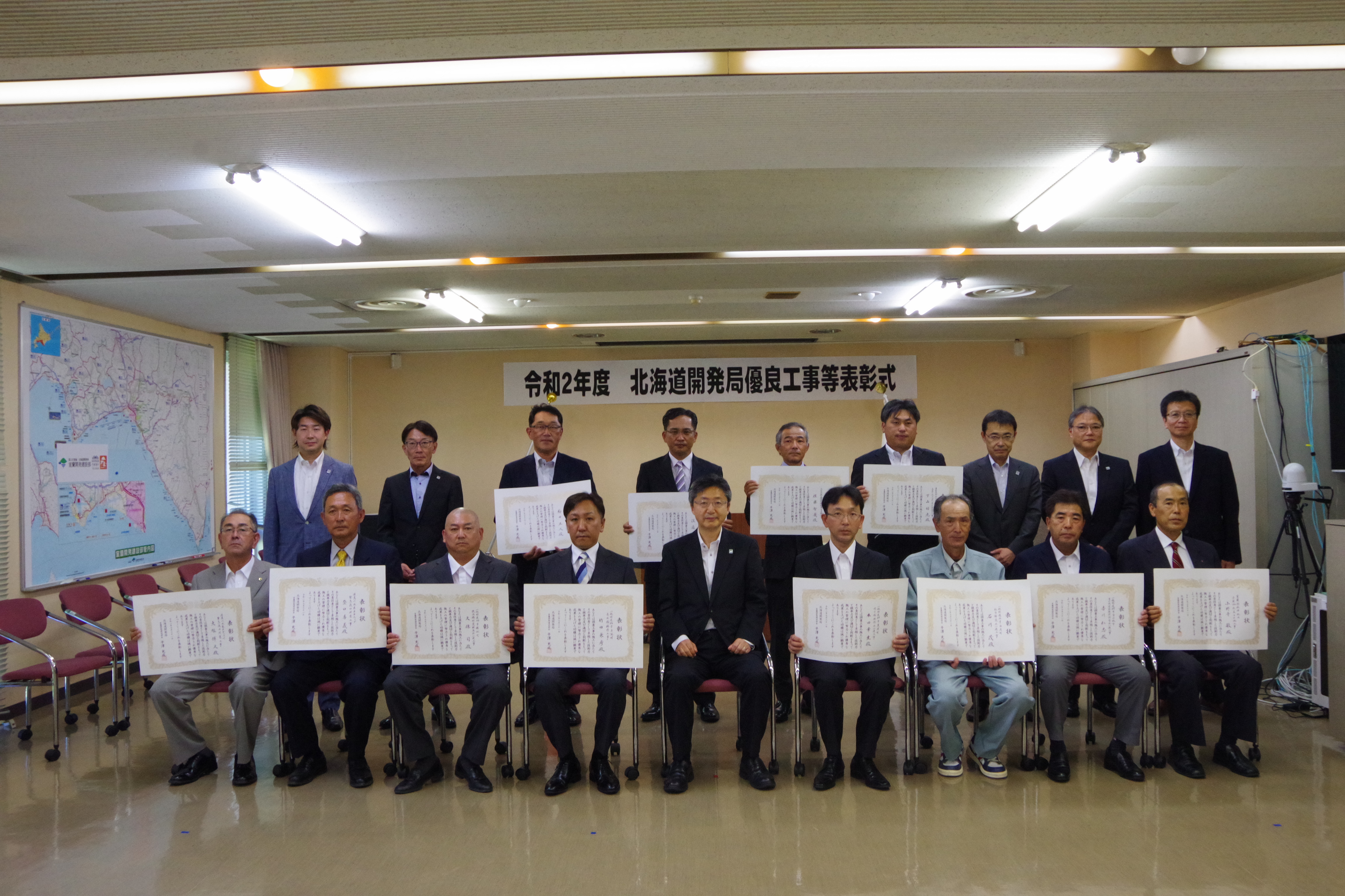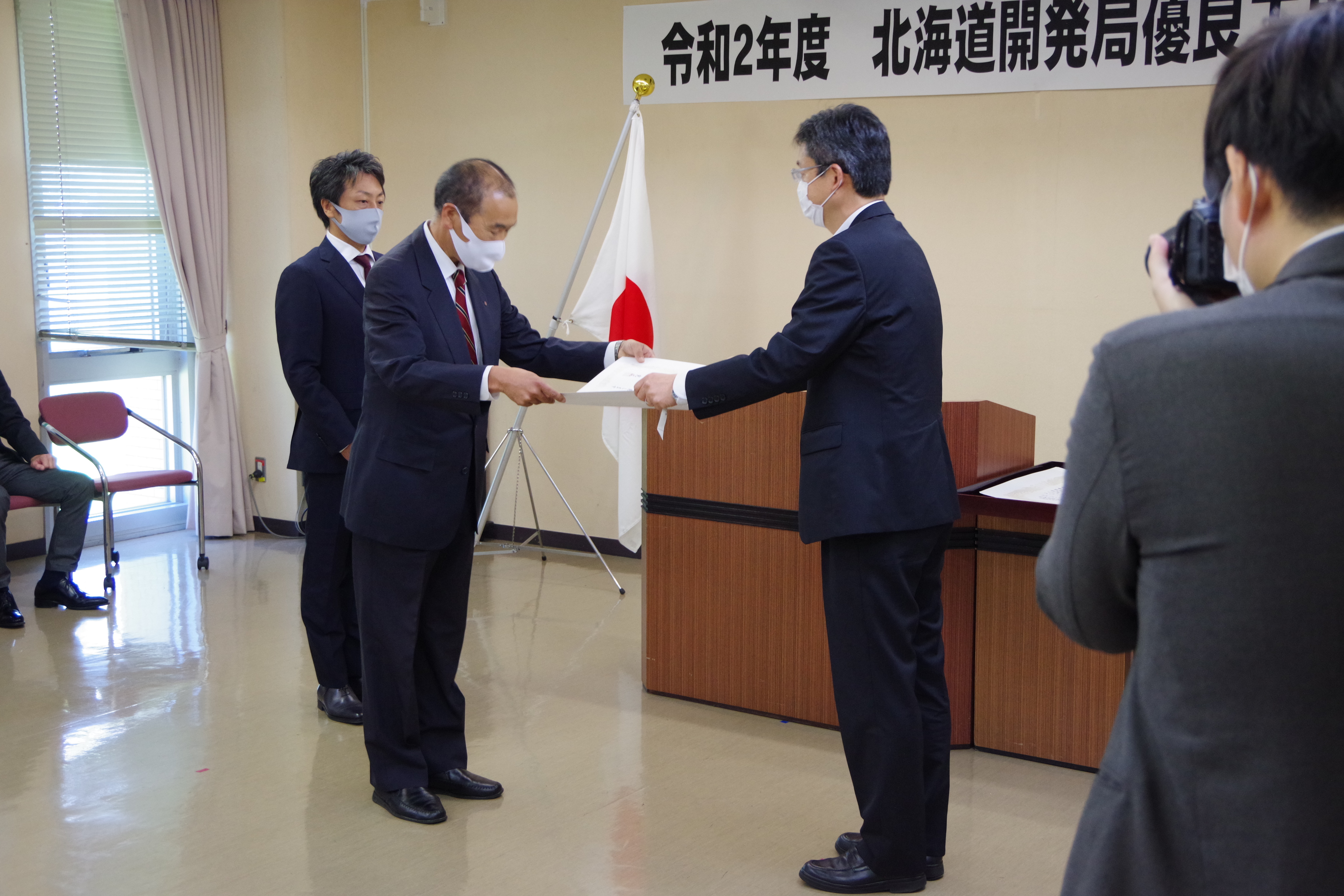 お知らせ表彰受賞 室蘭開発建設部優良工事表彰受賞:2020年7月31日 2020年7月31日、北海道開発局室蘭開発建設部の令和2年度優良工事表彰を受賞しました。 工事名:室蘭港祝津地区岸壁-11m改良その他工事 代表者:代表取締役社長 萩 宰 技術者:小野寺 敏
