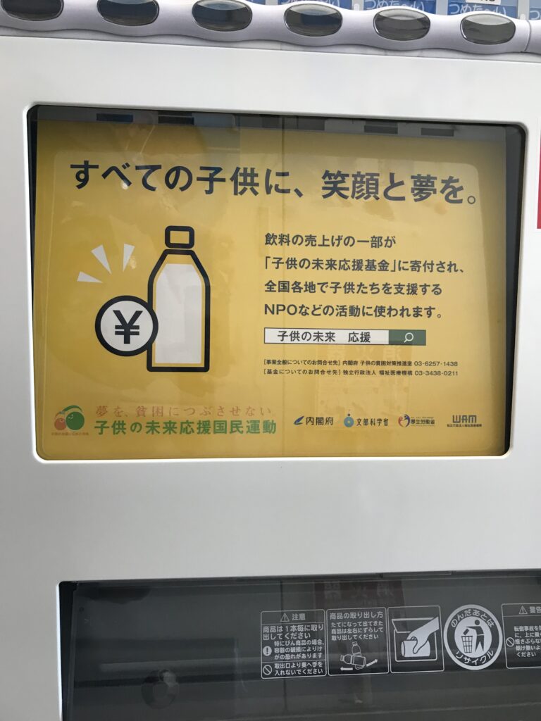 社員一人一人が、この自販機で購入するドリンクの一部が全国の子供たちの貧困対策の支援